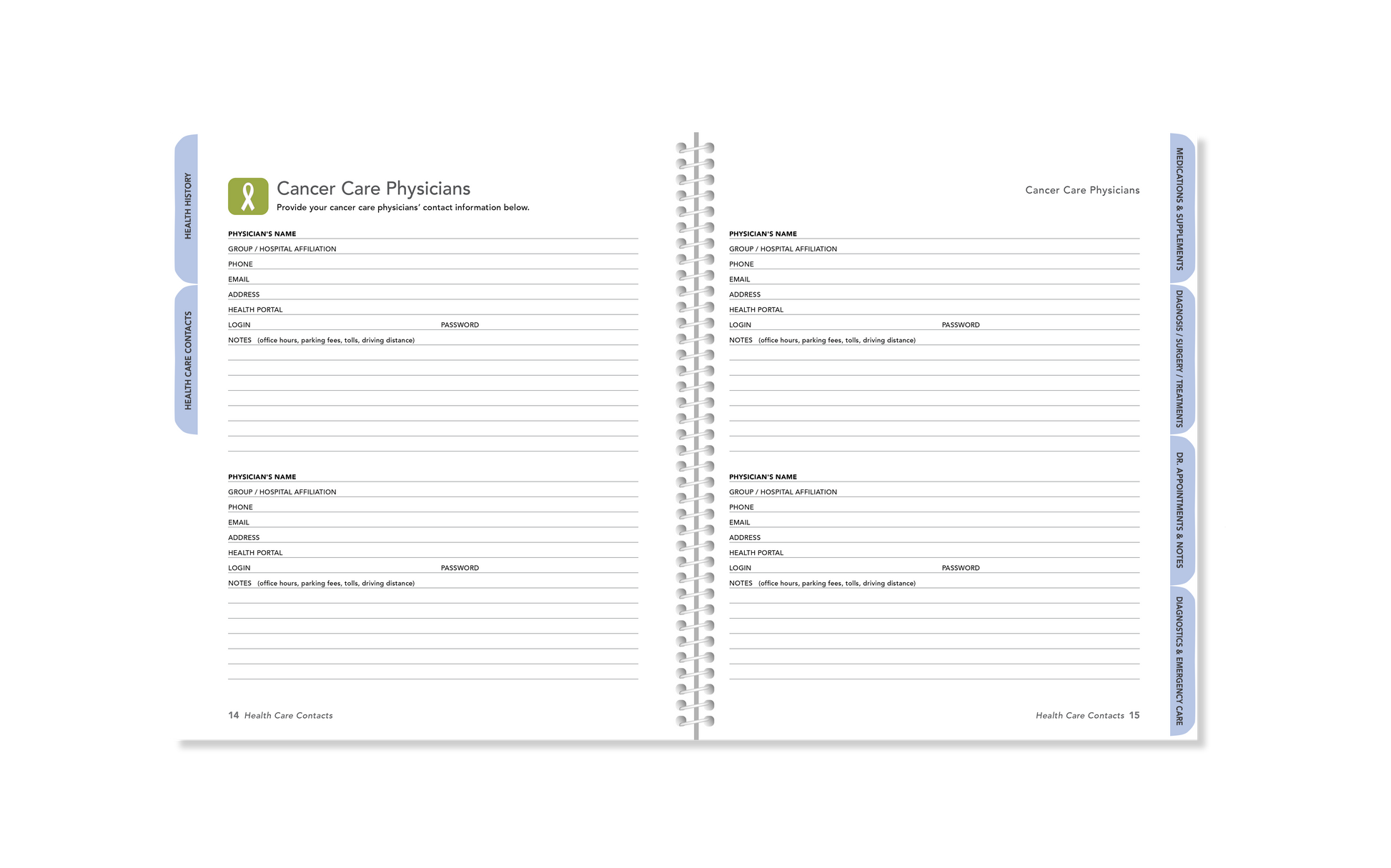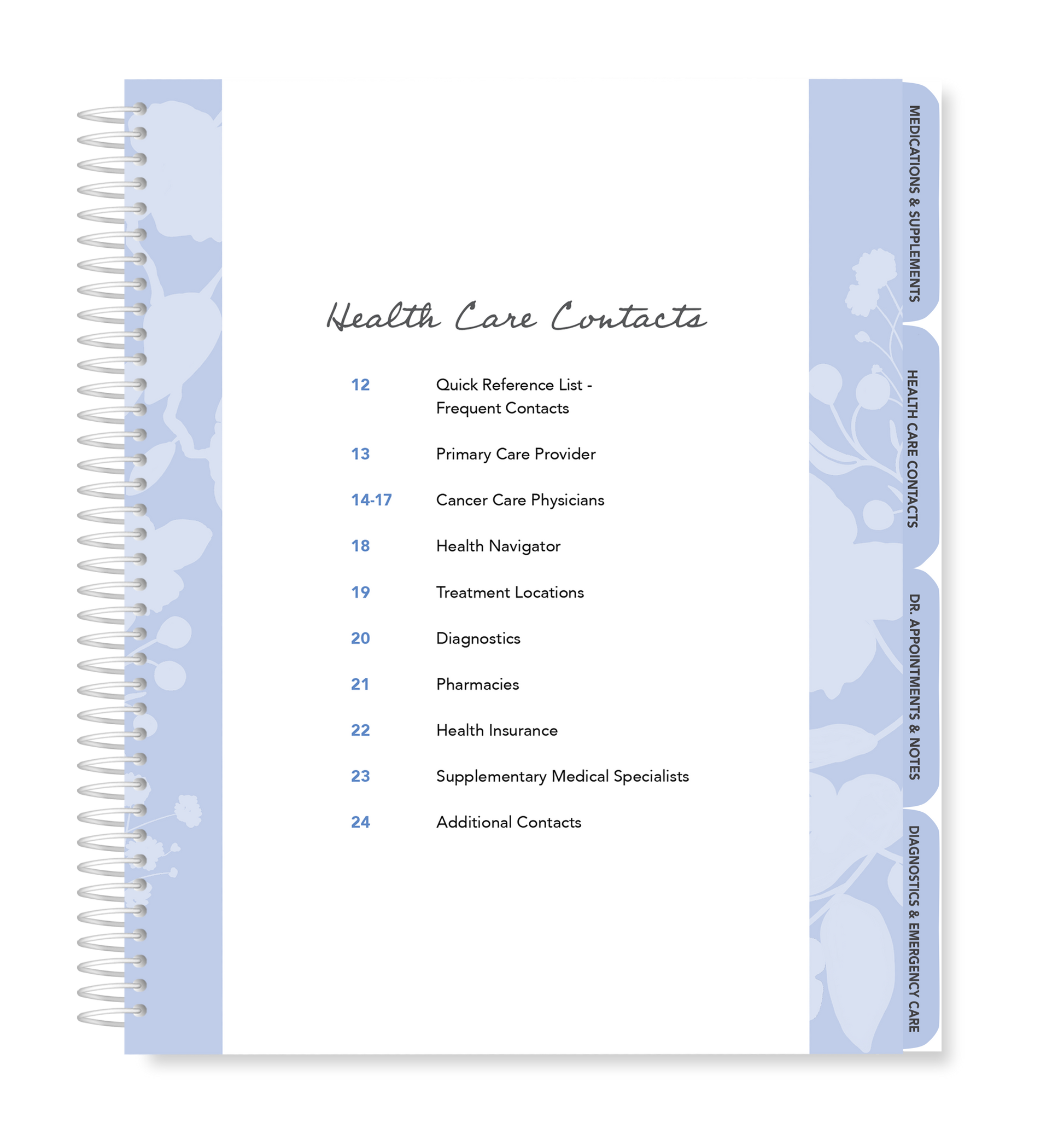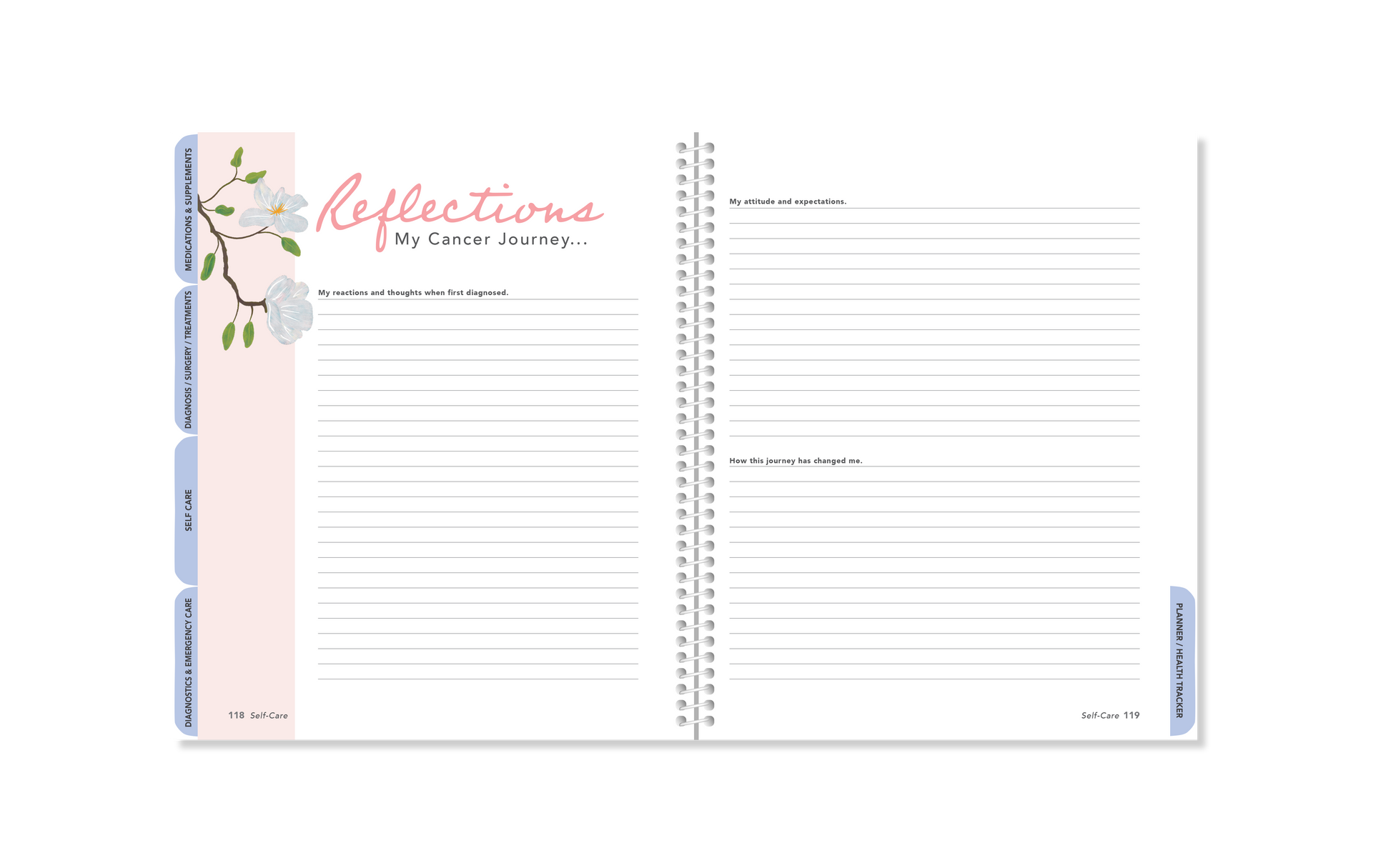 165 page Health Diary for organizing everything related to your cancer Journey.