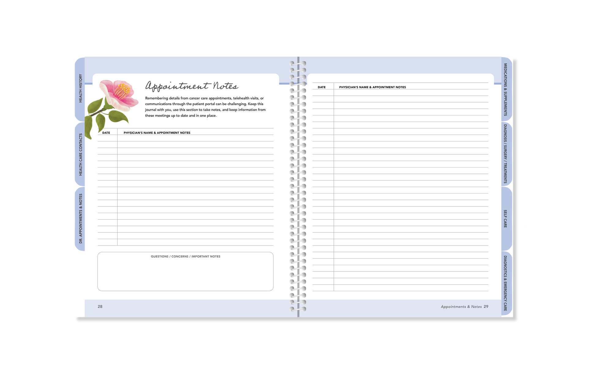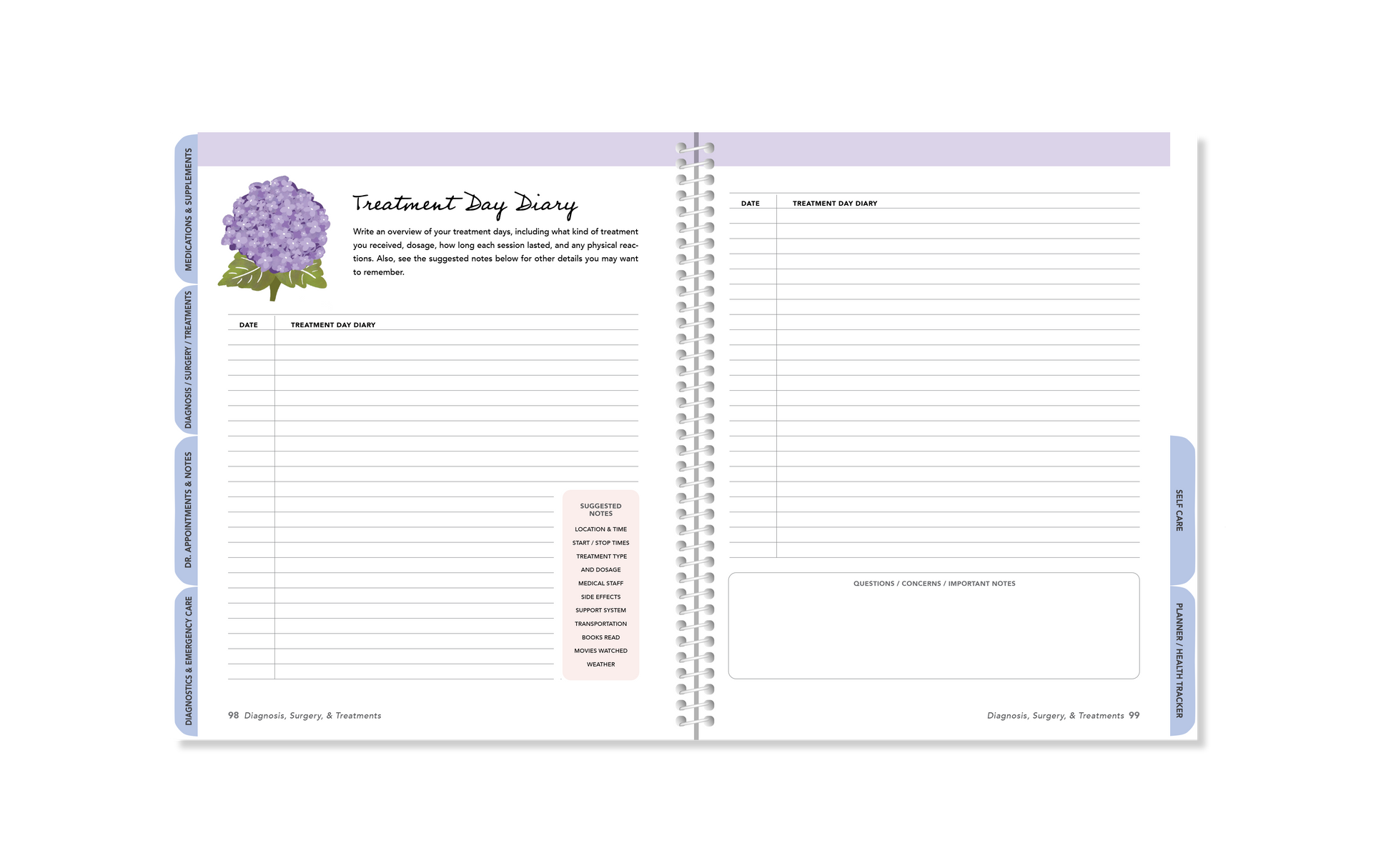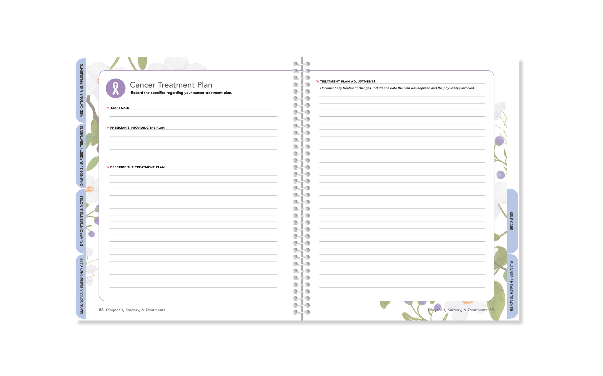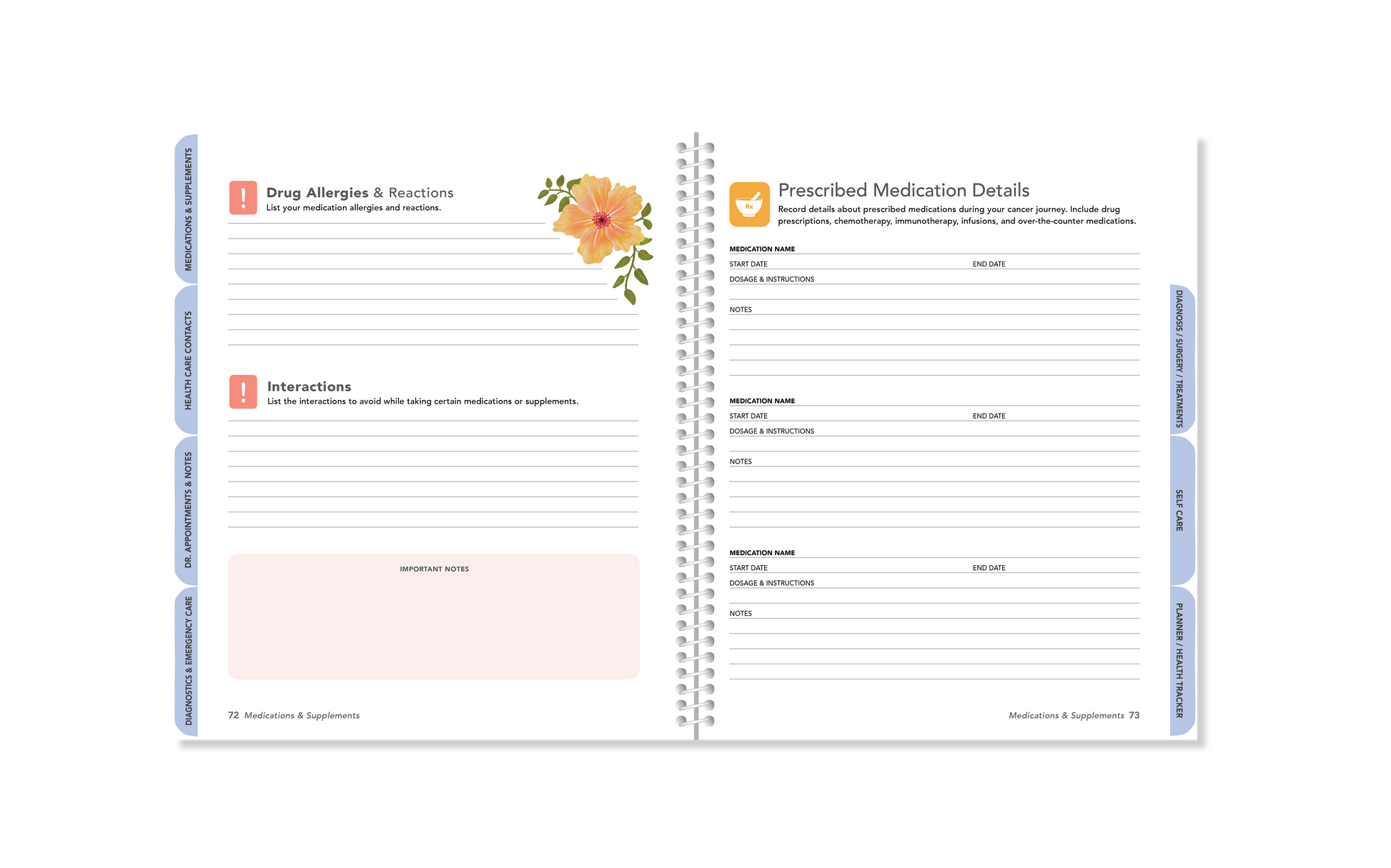 - Extensive guided journal pages allow you to take notes on doctor appointments, medical updates, diagnostic tests and results, medications & supplements, treatment details, surgery information, and the emotional aspects of your journey.