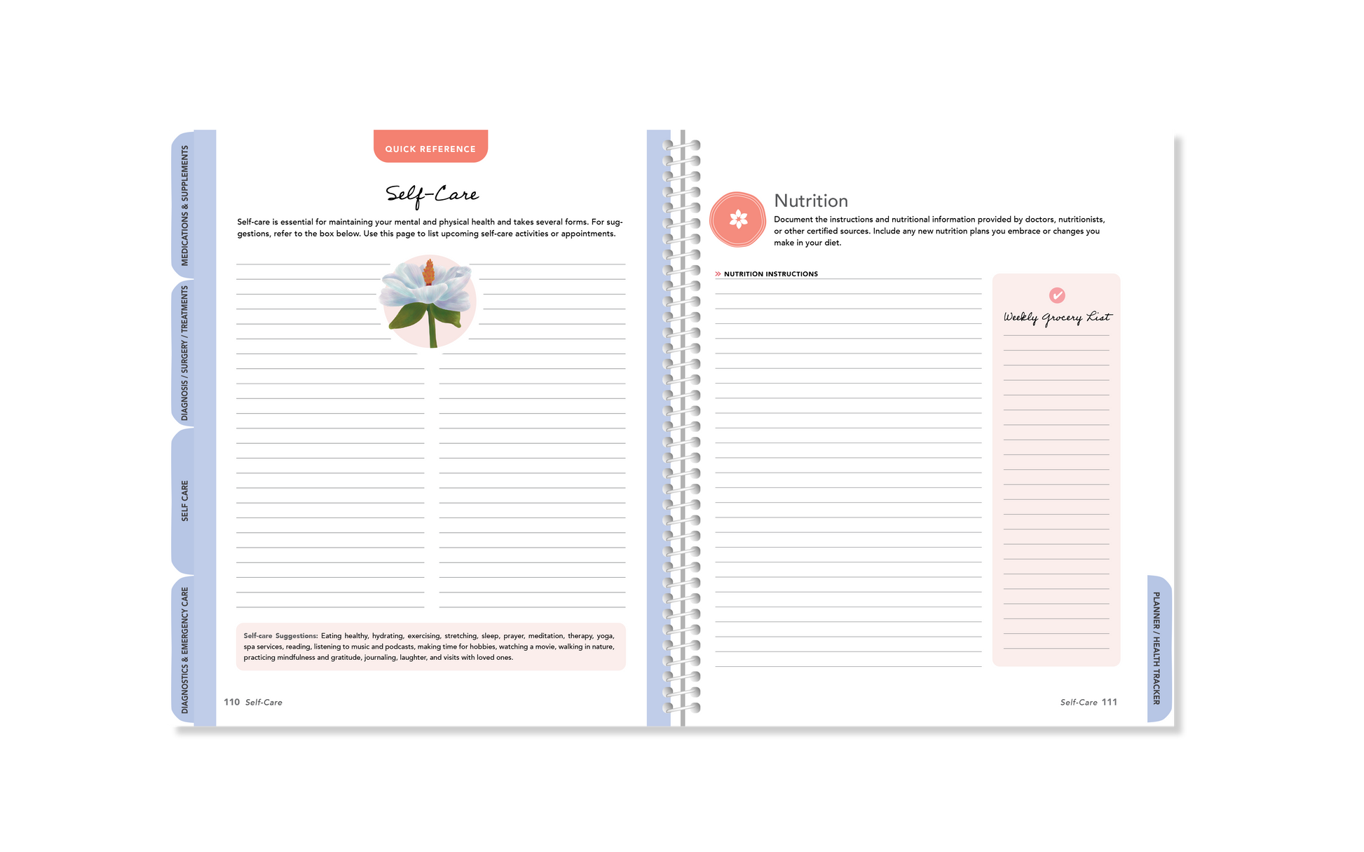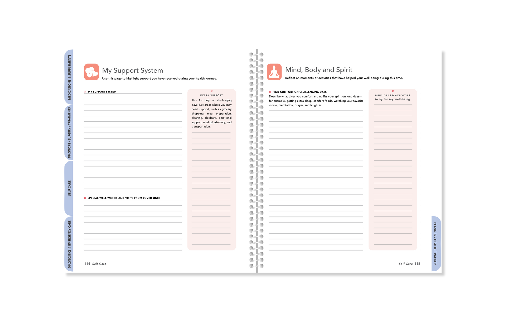 It provides ample space for your health notes and is a great resource for you and your support system to keep your health information organized and updated.